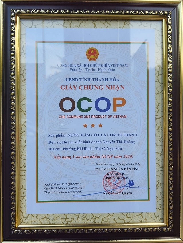 • Chứng nhận sản phẩm nước mắm vi thanh